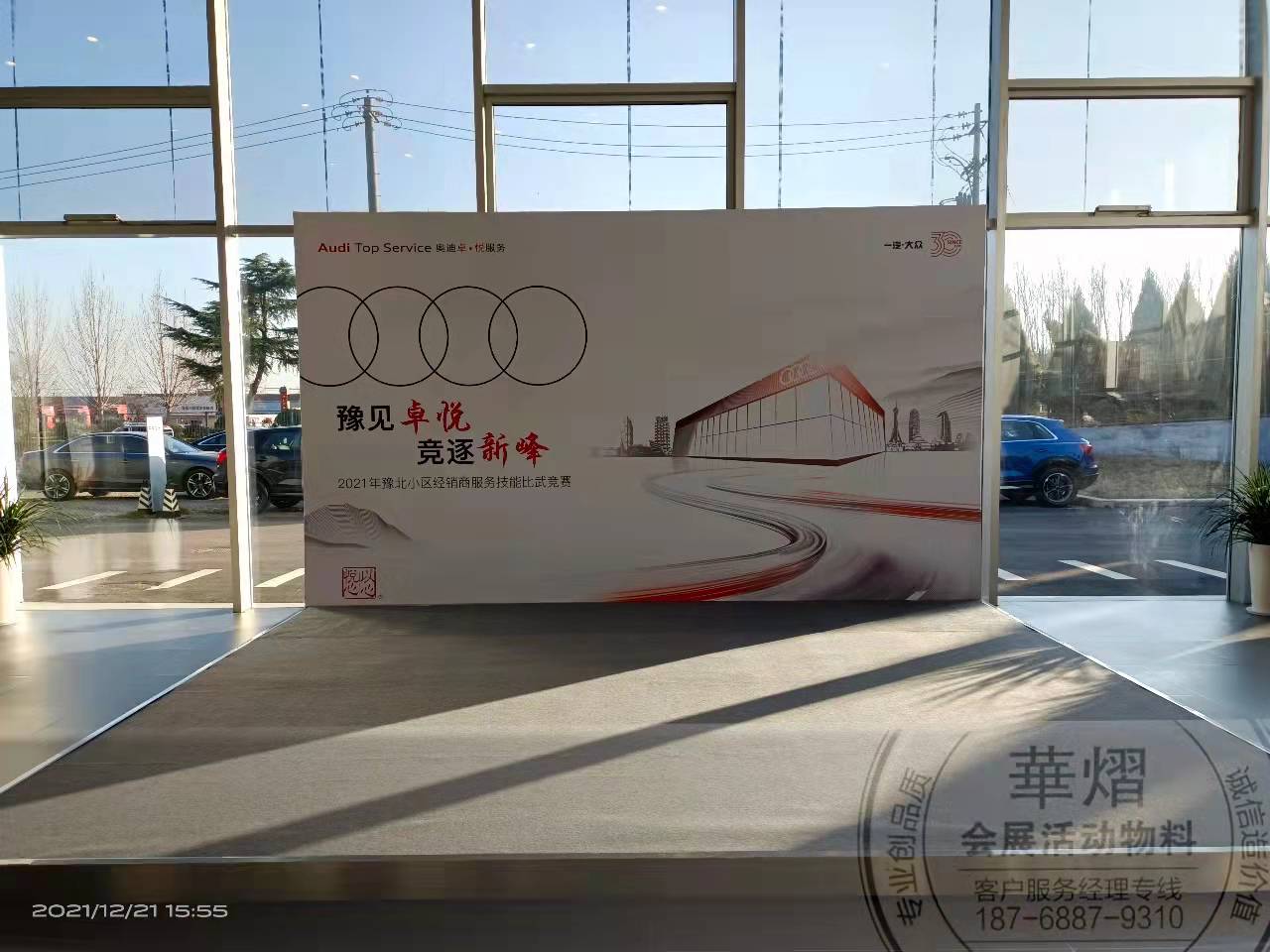 登封奥迪4S店华熠布场,活动物料由公司供应。公司业务有篷房租赁,大棚出租,桌椅出租,沙发租赁,铁马护栏出租,会展基础物料供应
